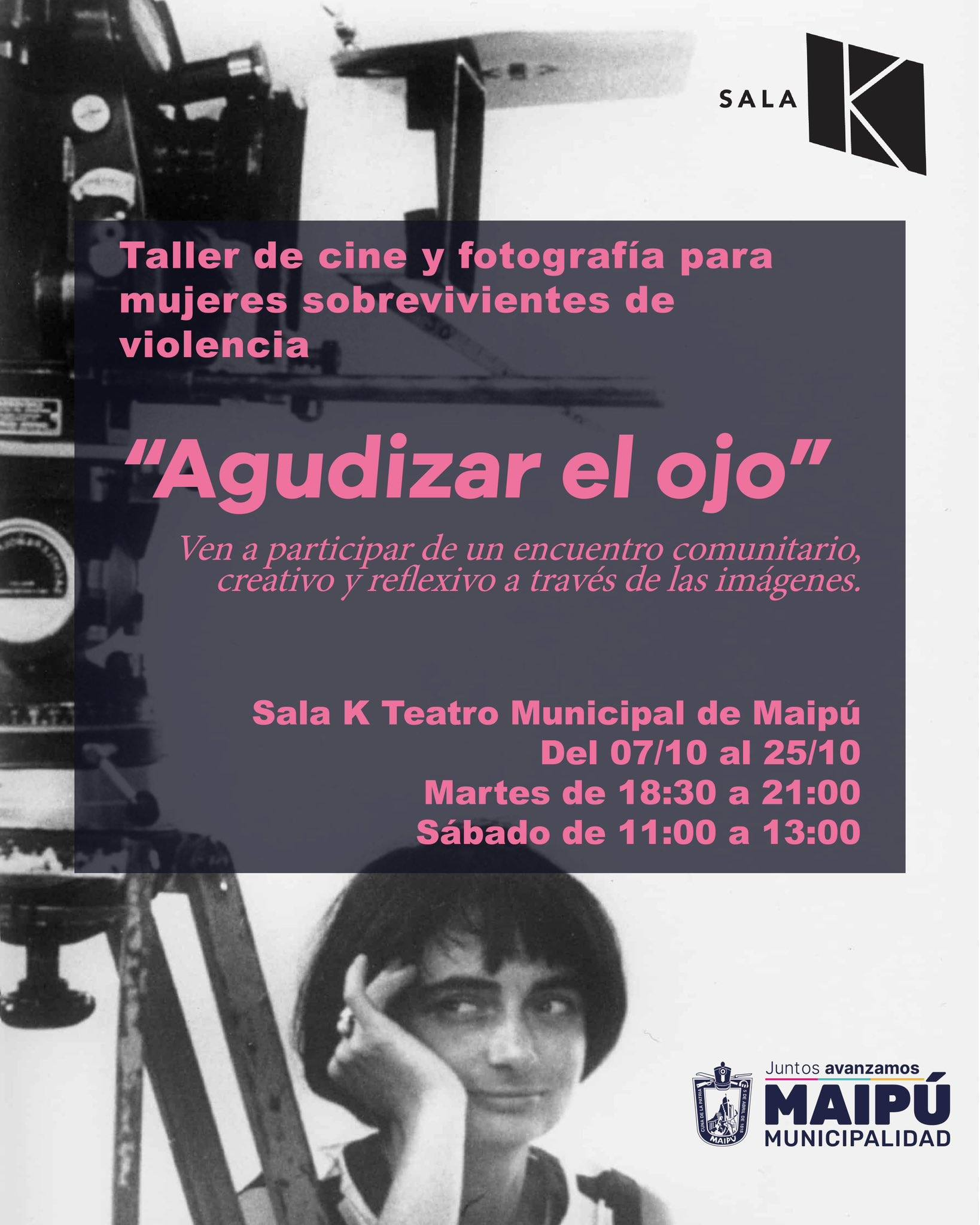 FUNDACIÓN CULTURAL KINE IMÁGENES CON SU PROYECTO SALA K MAIPÚ CONVOCA A PARTICIPAR EN TALLER GRATUITO DE CINE Y FOTOGRAFÍA PARA MUJERES SOBREVIVIENTES DE VIOLENCIA «AGUDIZAR EL OJO»