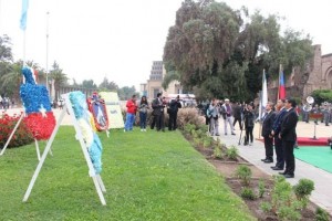Durante la Ceremonia Patriótica en la explanada del Santuario, que contó con la presencia del Ministro de Defensa, José Antonio Gómez; los embajadores Argentina y Perú, además de los altos mandos de las Fuerzas Armadas, de Orden y Seguridad Pública, el alcalde Christian Vittori, reiteró el llamado que realizó el 2013 al entonces Presidente Sebastián Piñera, para declarar feriado local.