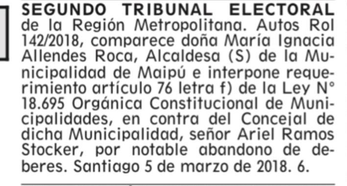 Redactó una “carta denuncia” que hizo llegar al gerente de la Corporación Municipal de Servicios y Desarrollo de Maipú José Miguel Espinoza Villalón.