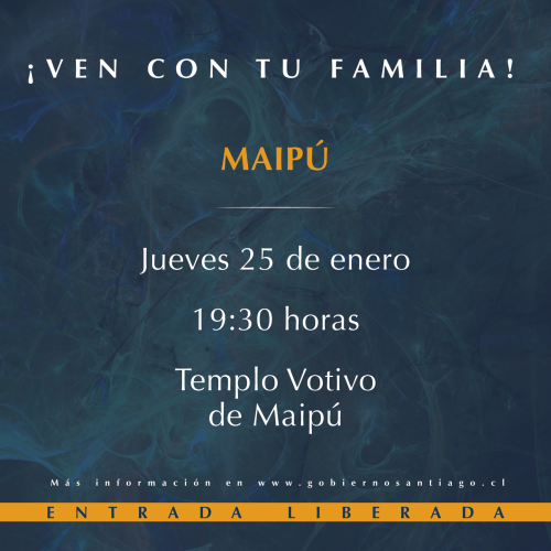 el jueves 25 de enero en el Templo Votivo de Maipú, todos a las 19:30 hrs. ;