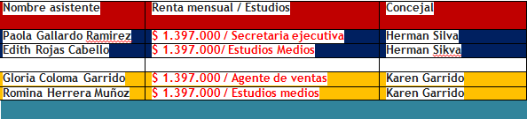 Este es un sistema que viene de las anteriores administraciones ( Undurraga y Vittori) y las asistentes indicadas en la crónica son sujetos pasivos puesto que esta forma de trabajo arrastra – a mi entender – una distorsión – ya que estas funcionarias municipales sui géneris pueden desempeñarse en relación a una jefatura directa del municipio y no en relación a un determinado concejal , que en la práctica actúa como jefe o superior jerárquico , y que en estricto rigor legal no lo es, y sería una mala copia del sistema parlamentario.