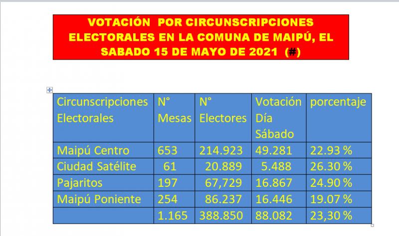 EL PRIMER DÍA DE VOTACIÓN ,EN MAIPÚ VOTARON 88.082 CIUDADANOS